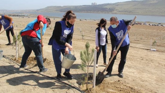 İqtisadiyyat naziri Mikayıl Cabbarovun qoşulduğu tədbir zamanı könüllülərlə birgə ərazinin torpaq-iqlim şəraitinə uyğun 1200 ədəd müxtəlif cinsli ağac əkilib.