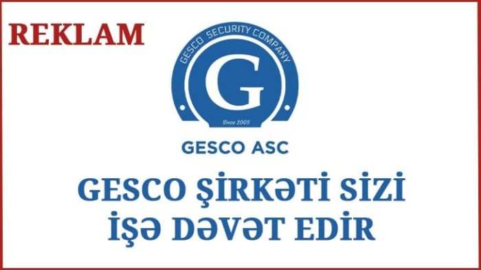 2005-ci ildən Azərbaycanda fəaliyyət göstərən “GESCO" mühafizə şirkəti sağlam, idmanla məşğul olan, Azərbaycan və rus dillərini bilən, 25-40 yaş arası və mühafizə sahəsində çalışmaq istəyi olan şəxsləri işə dəvət edir.