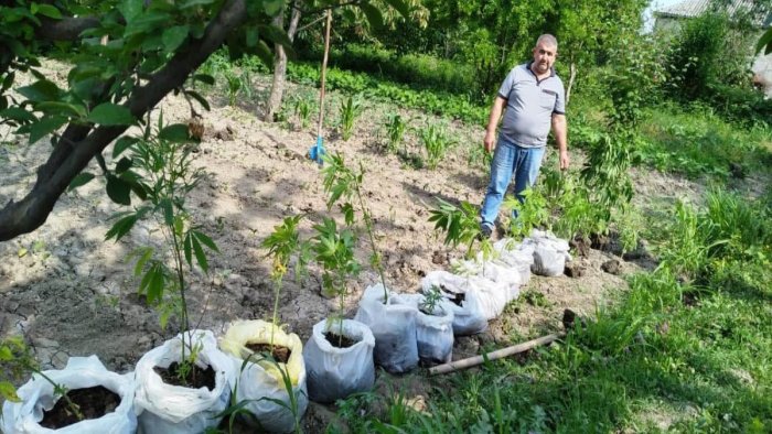 Ona məxsus fərdi yaşayış evinə baxış zamanı evin həyətyanı sahəsindən xüsusi aqrotexniki qaydada qulluq edilərək yetişdirilən 19 ədəd çətənə bitkisi aşkarlanıb.