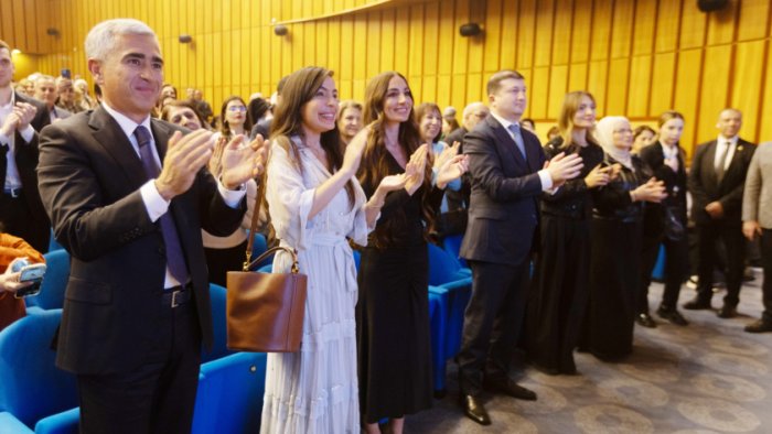 Bizim.Media xəbər verir ki, şair, böyük dramaturq Hüseyn Cavidin xatirəsinə həsr olunan tədbirdə Heydər Əliyev Fondunun vitse-prezidenti Leyla Əliyeva və Arzu Əliyeva da iştirak edib.