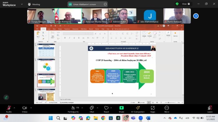 “Konstitusiya və Suverenlik İli” çərçivəsində keçirilən vebinarda Azərbaycanın regional və qlobal müstəvidə sürətlə artan nüfuzu, beynəlxalq təşəbbüslərdəki fəal iştirakı və ölkədə formalaşmış səmərəli inkişaf modeli haqqında ətraflı məlumat verilib.