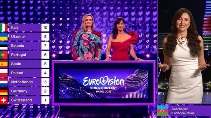 "Avroviziya 2025" beynəlxalq mahnı müsabiqəsinin hazırda davam edən finalında ölkələr səsvermənin nəticələrini açıqlayıblar.