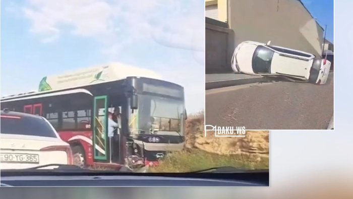 Hadisə nəticəsində "Toyota" markalı avtomobil aşıb. Qəza zamanı avtobusa da ziyan dəyib.