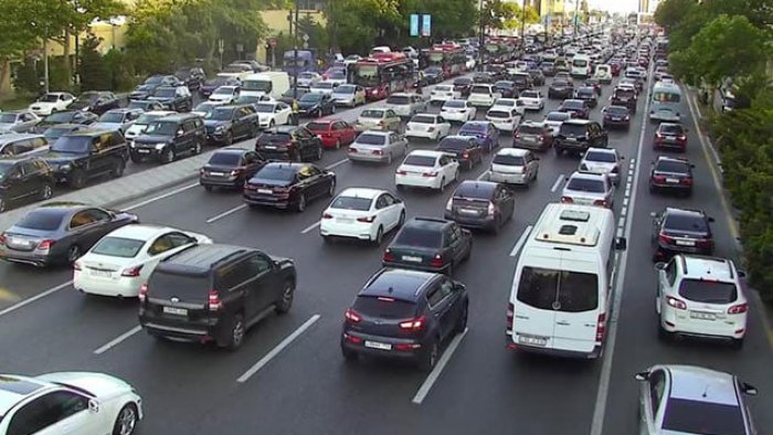 Bakının bir sıra yollarında nəqliyyatın sıxlığı müşahidə olunur.