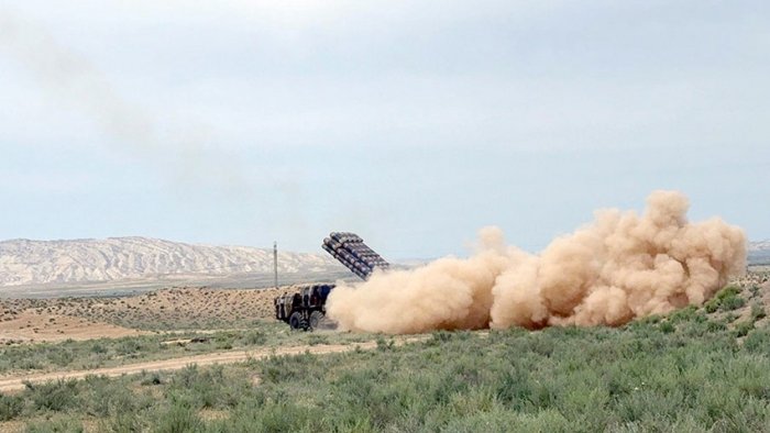 Bildirilib ki, “Həyəcan” siqnalı ilə qaldırılan reaktiv artilleriya bölməsi daimi dislokasiya məntəqəsini tərk edərək cəmləşmə rayonunda yerləşib, döyüş texnikaları döyüş tətbiqinə hazırlanıb. “Smerç” YARS bölməsi start mövqeyinə çıxarılaraq atış tapşırıqlarını uğurla icra edib.