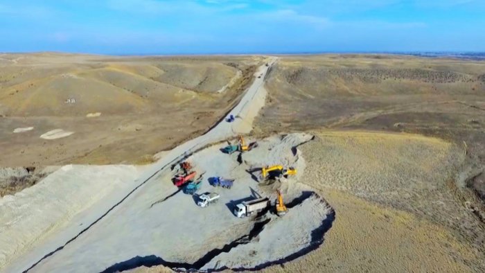 Hazırda yol boyu yararsız qrunt qazılaraq çıxarılır, yararlı qruntla əks-dolğu işləri aparılır, torpaq yatağı genişləndirilir.