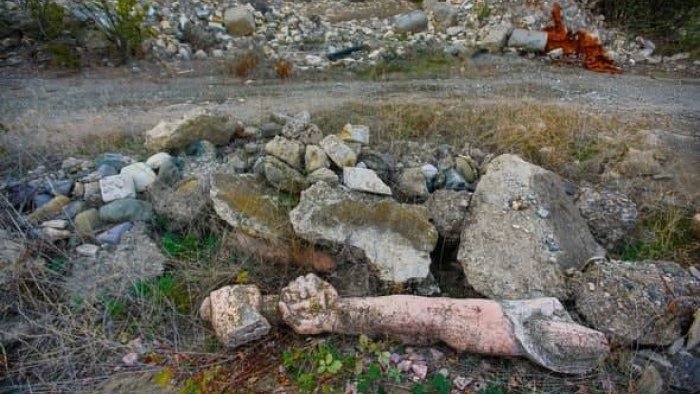 “Bu heykəli əvvəl olduğu yerdən - Ağdamdakı teatr binasının qarşısından təxminən bir kilometr uzaqda tapdım. Erməni işğalçıları tərəfindən məhv edilmiş heykəlin qalıqları şəhər boyu səpələnib. Heykəlin başını tapa bilmədim”.