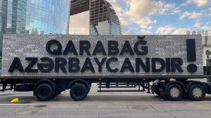 Bizim.Media-nın məlumatına görə, həmin lövhə üzərində böyük hərflərlə “QARABAĞ AZƏRBAYCANDIR!” sözləri yazılıb.