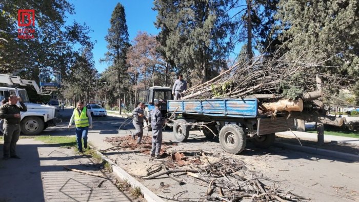 Gəncə şəhər Mənzil-Kommunal Təsərrüfatı İstehsalat Birliyinin Yaşıllaşdırma şöbəsi tərəfindən aşan ağacların doğranaraq ərazidən daşınması təmin edilib.