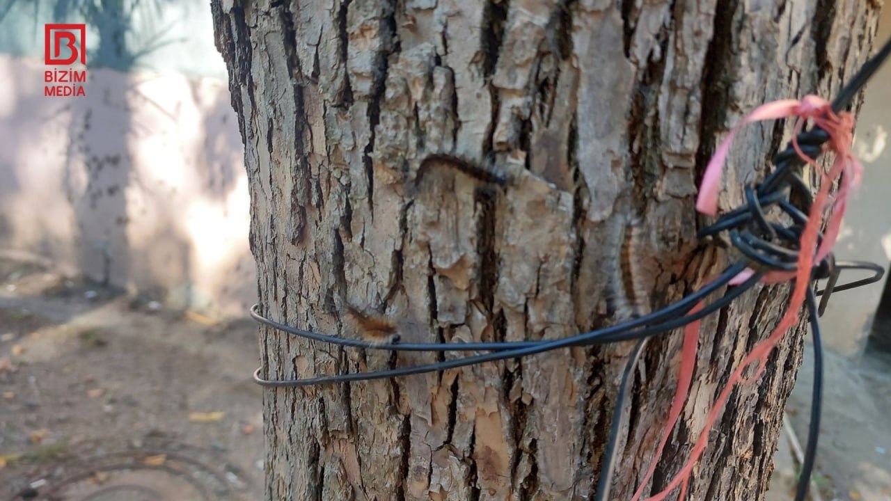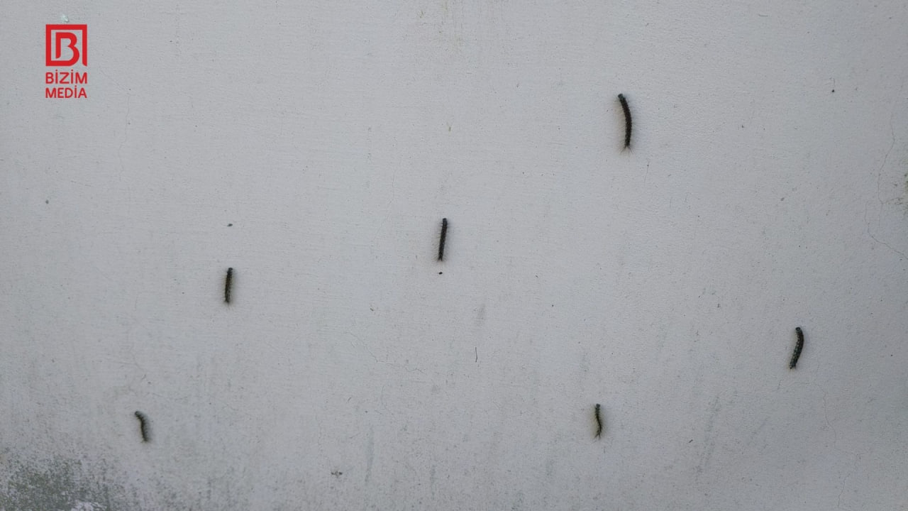 Qurdlar binanın qarşısındakı ağaclardan düşərək bloklara və mənzillərə doğru yayılır.