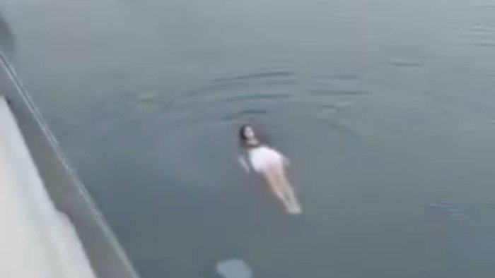 Kimliyi naməlum qadın əynində paltarla suya girərək üzməyə başlayıb.