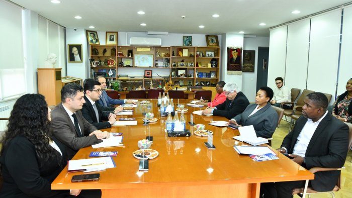 Bizim.Media xəbər verir ki, nazir müavini Nomusa Dube-Ncube, eləcə də müxtəlif istiqamətlər üzrə texniki və beynəlxalq əlaqələr üzrə mütəxəssislərlə ADNSU-nun rektoru, dosent Rüfət Əzizov arasında keçirilən görüşdə ADNSU-nun Tədris məsələləri üzrə prorektoru, dosent Rza Məmmədov, Strateji məsələlər üzrə prorektor, dosent Vazeh Əskərov, Elm və innovasiya üzrə prorektor vəzifəsini icra edən, dosent Elviz İsmayılov, həmçinin Beynəlxalq Əməkdaşlıq Departamentinin müdiri Həbibə Nəzirova yer alıblar.
