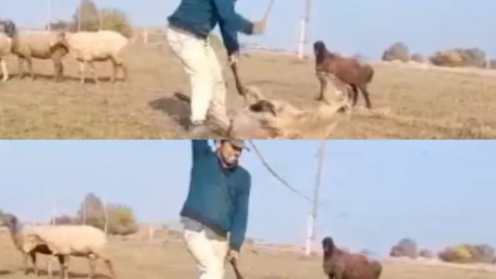 Bizim.Media xəbər verir ki, rayon sakini olan V. Bayramquliyevin saxladığı qoyunlardan birini vəhşicəsinə dayanmadan vurduğu anların görüntüləri sosial şəbəkədə yayılıb.