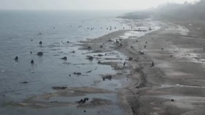 Bizim.Media xəbər verir ki, dənizdə iri qayalıqları xatırladan bu çıxıntılar əslində ağac kökləri və gövdələrin qalıqlarıdır.