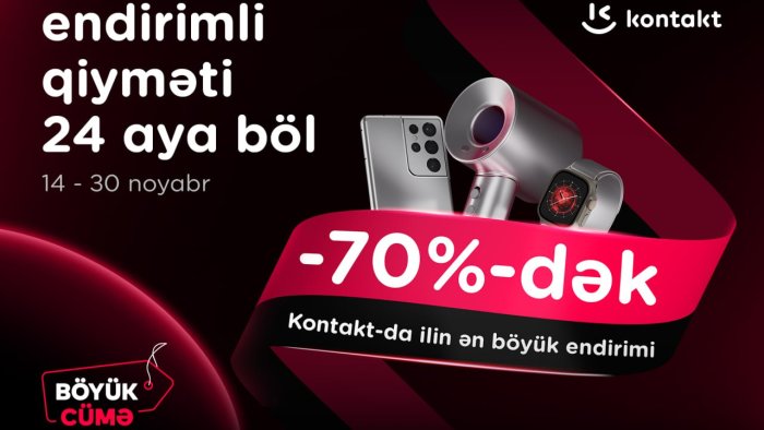 Bu təkliflər yalnız bu həftə - noyabrın 30-dək qüvvədədir. Yəni, “Kontakt”ın builki Böyük Cüməsində endirimlərin böyük, şərtlərin rahat, məhsulların isə limitli olması mağazalarda əsl yarış havası yaradıb. Sürətlə keçən vaxtda məhsullar da sürətlə tükənir. Odur ki, vaxt itirmədən ən yaxın “Kontakt” mağazasına və ya kontakt.az saytına baş çəkərək arzuları əlçatan etməyin əsl vaxtıdır.