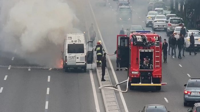 Nərimanov rayonu, Heydər Əliyev prospekti, əsas yolda avtomobillərin birində yanğın baş verib.