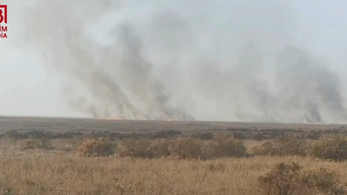 Bizim.Media-nın yerli bürosu xəbər verir ki, quru otlaq və sıx qamışlıq sahəsinin alışması nəticəsində yaranan tüstü kilometrlərlə uzaqdan belə seçilir.