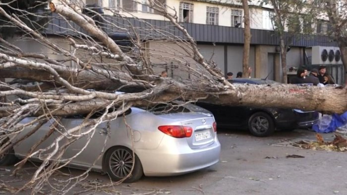 Bakıda irigövdəli ağac ərazidə park edilmiş avtomobilin üzərinə aşıb.