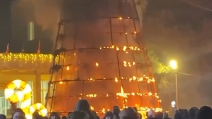 Bizim.Media xəbər verir ki, şəhər meydanında quraşdırılmış yolkanın işıqlarının təntənəli yandırılması mərasimində ağac qəfil alışıb.