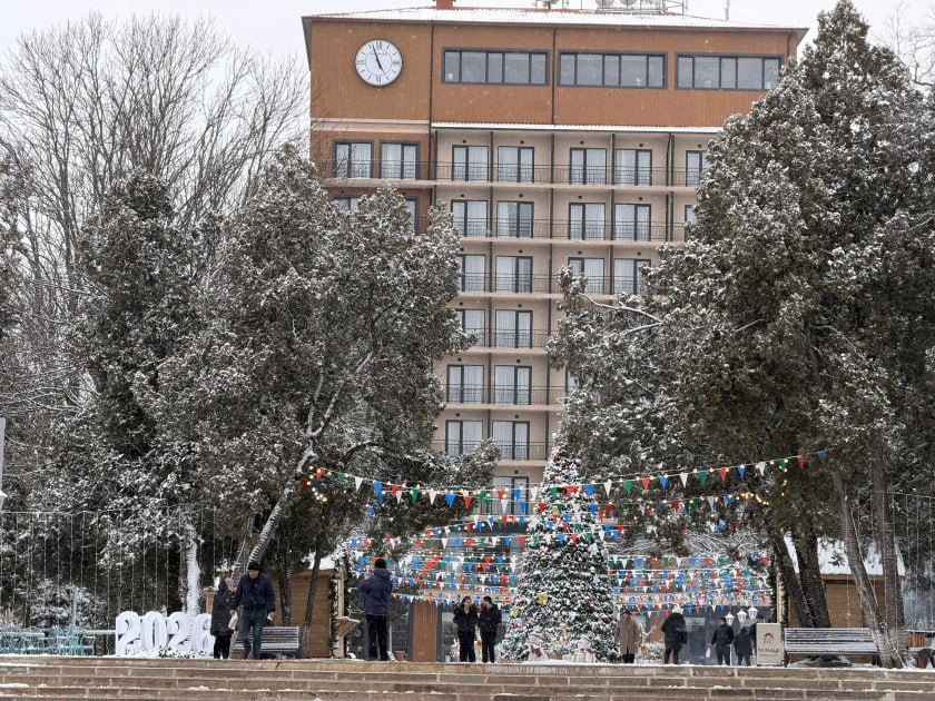 Şuşa sakinləri “Güllü bağ”da qurulan Yeni il yolkası ətrafında şəkil çəkdirib, ilk qarın sevincini yaşayıblar.