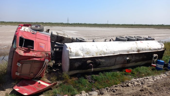 Biləsuvarda yanacaq daşıyan avtomobil aşıb.