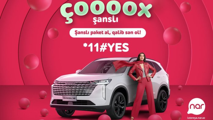 Sərfəli mobil operator “Nar”ın “Çoox Şanslı” stimullaşdırıcı lotereyasının növbəti qalibləri bu axşam müəyyən ediləcək. Belə ki, lotereyaya qoşulan şanslı “Nar” abunəçilərindən biri 10-cu “Haval H6 Ultra” avtomobilini, üçü isə Xiaomi Redmi Note 14 Pro” smartfonunu qazanacaq.