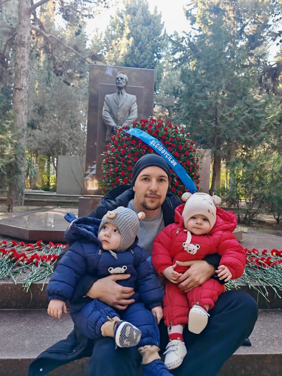 Azərbaycanın mərhum sabiq prezidenti Əbülfəz Elçibəyin oğlu Ərturqut Əliyev əkiz övladları ilə birgə atasının məzarını ziyarət edib.