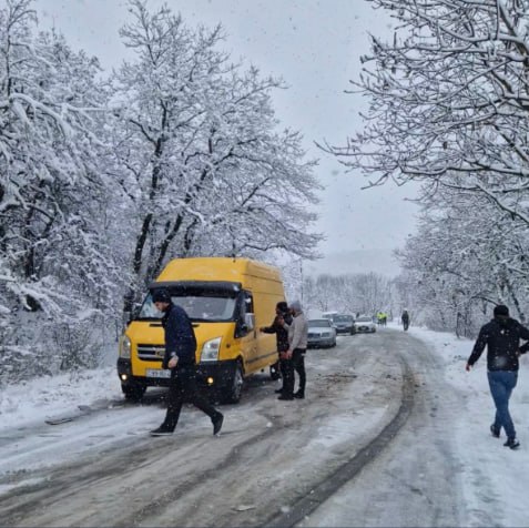 Qar örtüyünün qalınlaşması və yolun sürüşkən olması səbəbindən xüsusilə sərt döngəli və enişli hissələrdə bir neçə avtomobil yolda qalıb, bəzi nəqliyyat vasitələri isə yoldan çıxıb.