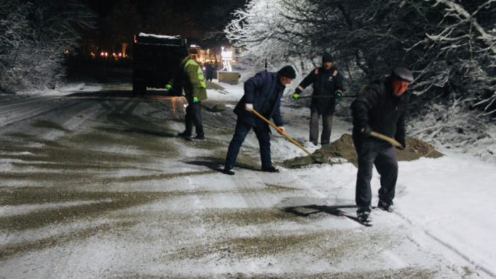 Gecə saatları olmasına baxmayaraq, ərazidə işlər dayandırılmayıb. Yol İstismar İdarəsinin əməkdaşları tərəfindən 24 saatlıq növbəli iş rejimində yolun təmizlənməsi və təhlükəsizliyin təmin edilməsi istiqamətində tədbirlər görülür.