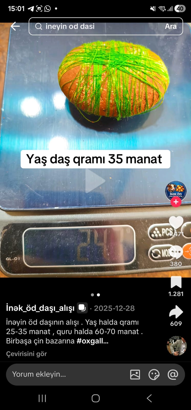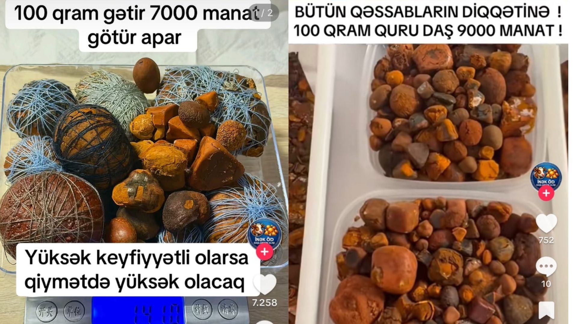 Sosial şəbəkələrdə inəyin öd daşlarının fantastik qiymətə alışı ilə məşğul olan səhifələr var.