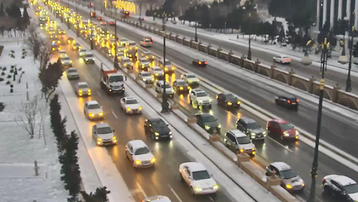 Bakının bir sıra yollarında nəqliyyatın sıxlığı müşahidə olunur.