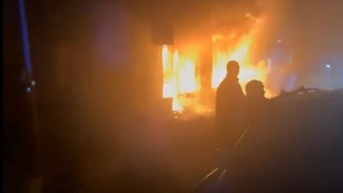 Müştərilər içəridə olarkən obyekti yandırıb qapıları bağladılar - VİDEO