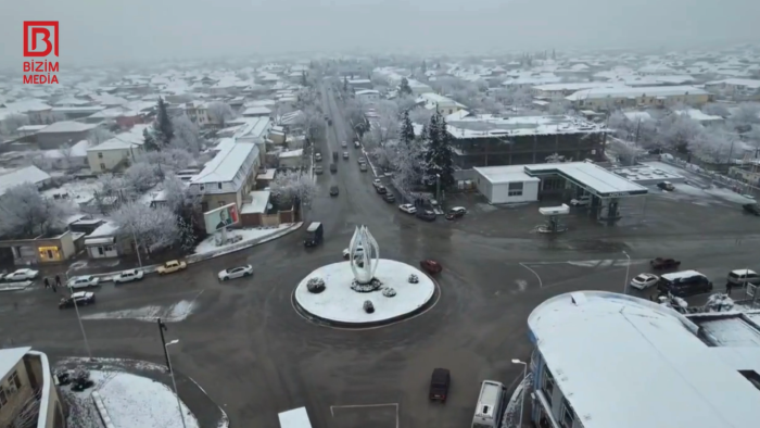 Kürdəmirdə yağan qar rayonu ağ örpəyə bürüyüb.