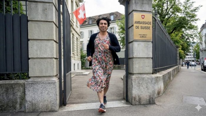 Nəhayət, avqustun 18-də azərbaycanlı tanışı Emini İsveçrə səfirliyi yaxınlığında maşından düşürür. Emin səfirlik ətrafında mülki geyimlilərin polis olduğunu anlayır. O, ingiliscə birtəhər danışıb onları aldatmağa çalışır. Pasportunu soruşurlar, deyir ki, pasportu isveçrəlilərdədir. Emini əvvəlcə tanımırlar. Elə sorğu-sual gedərkən qapının zəngini basır. Kimsə qapını açır və onu içəri dartır.