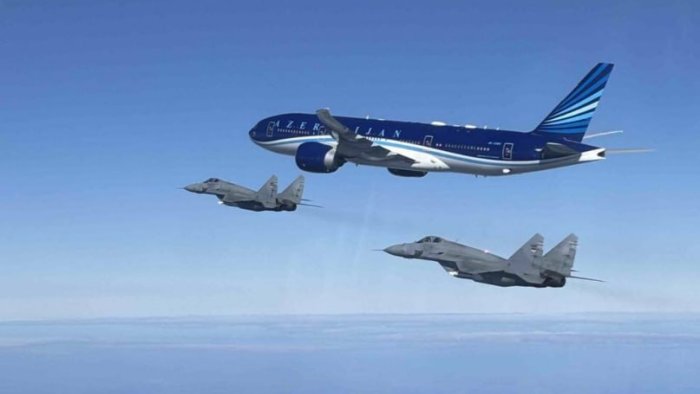 Prezident İlham Əliyevin Serbiyaya səfəri başa çatdıqdan sonra dövlət başçısının təyyarəsini bu ölkənin qırıcı təyyarələri müşayiət edib.