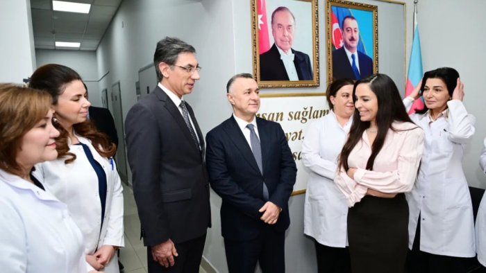 Leyla Əliyeva qeydiyyat, qəbul, həkim, baş tibb bacısı, manipulyasiya otaqlarına baş çəkib, mərkəzin tibbi personalı ilə həmsöhbət olub, onlarla şəkil çəkdirib.