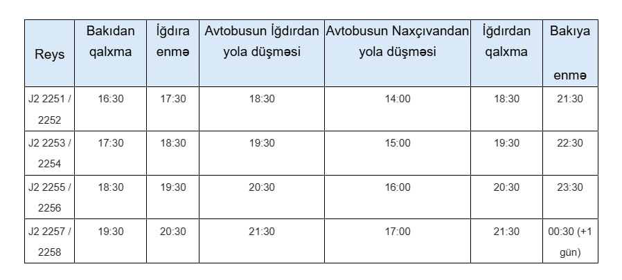 Bildirilib ki, mövcud vəziyyət nəzərə alınaraq Azərbaycan vətəndaşlarının Bakı ilə Naxçıvan arasında alternativ nəqliyyat əlaqəsindən istifadə edə bilmələri üçün AZAL-ın Bakı-İğdır-Bakı marşrutu üzrə növbəti uçuş cədvəli hazırlanıb.