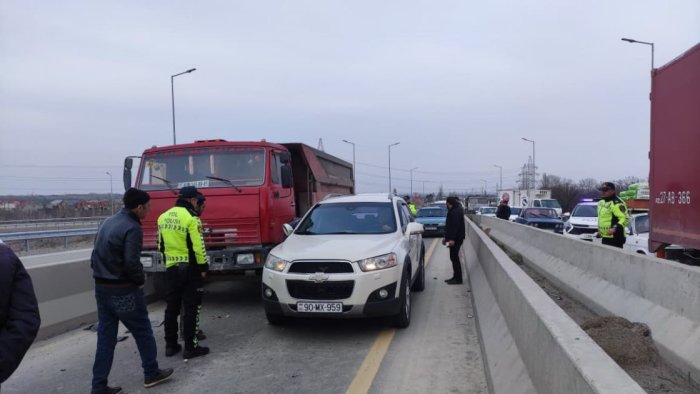 Bizim.Media xəbər verir ki, buna səbəb “KamAZ” markalı yük avtomaşını ilə “Chevrolet" markalı yüngül minik maşınının qəza törətməsi olub.