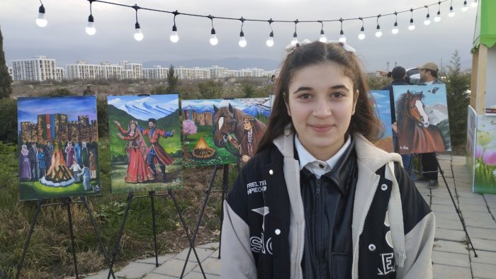 Gənc rəssam əlavə edib ki, yaradıcılığında vətənpərvərlik mövzusu xüsusi yer tutur və o, gələcəkdə 44 günlük Vətən müharibəsinə həsr olunan daha çox əsər üzərində işləməyi planlaşdırır.
