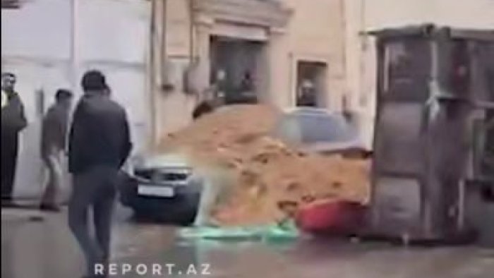 Bundan əlavə, gübrə həm yerə, həm də avtomobilin üzərinə dağılıb.