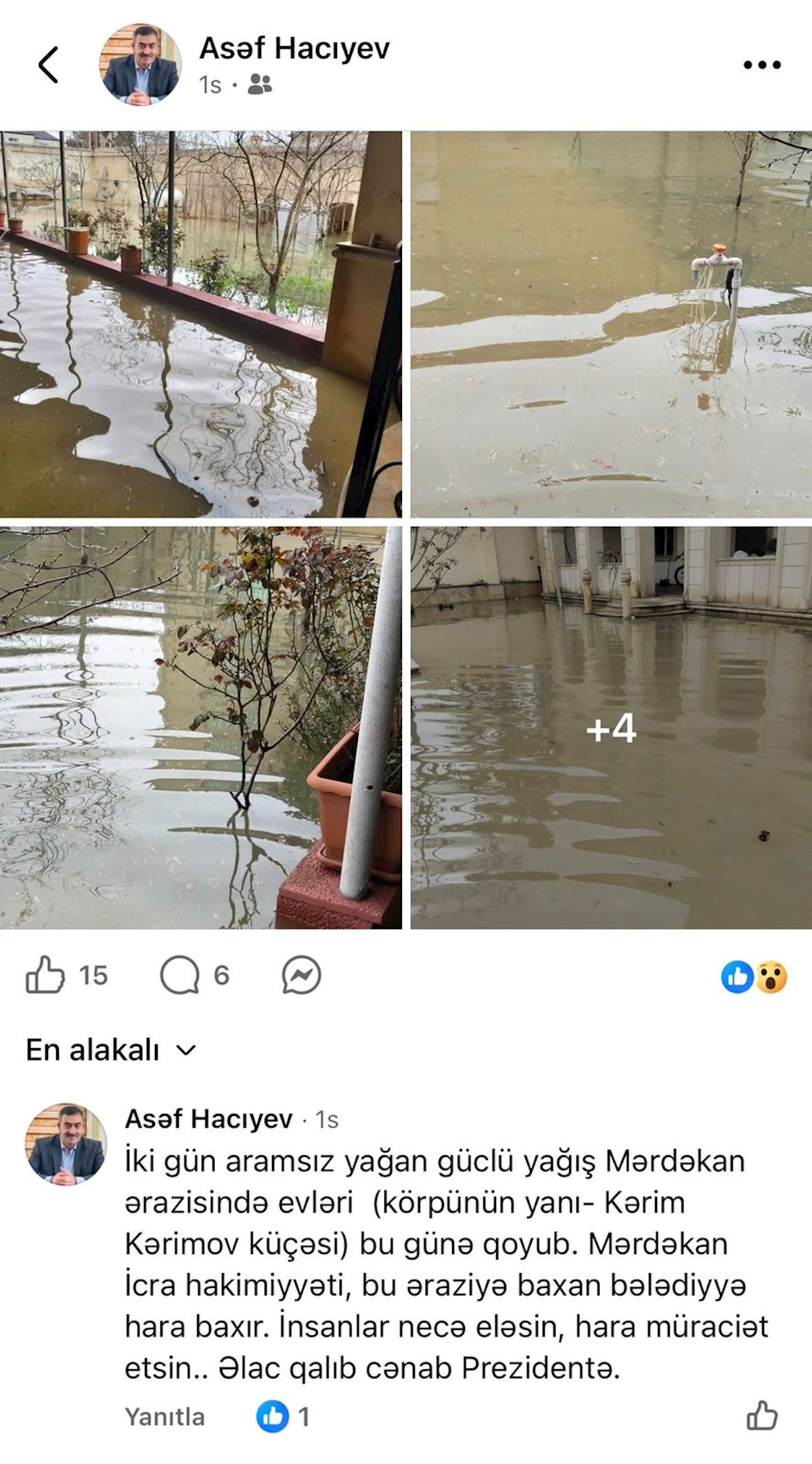 Onun evi yağış suları altında qalıb.