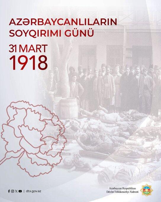 Dövlət Təhlükəsizliyi Xidmətinin (DTX) sosial media hesablarında 31 Mart - Azərbaycanlıların Soyqırımı Günü ilə bağlı paylaşım edilib.