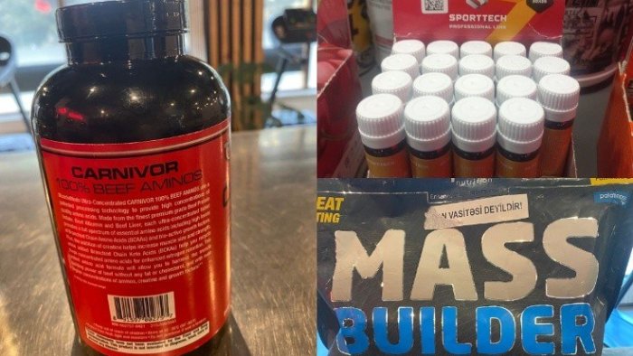 Eyni zamanda, Bakı şəhəri, Xətai rayonu, X.Məmmədov küçəsi, ev 34 ünvanında fəaliyyət göstərən, fiziki şəxs Qasımov Əfqan Ruslan oğluna məxsus “Wolf Fitness” idman zalında arıqlamaq məqsədilə qəbul edilən “L-Carnitine 2000 caffeine” əmtəə nişanlı, Sabunçu rayonu, Bakıxanov ştq, Sülh küçəsi 14/2 ünvanında fəaliyyət göstərən, fiziki şəxs Bayramov Fuad Fəqan oğluna məxsus “Arslan” fitnes zalında isə “Gold Standart Whey”, “C4-Pre Workout”, “Argipower 120 cephl” əmtəə nişanlı idman qida məhsullarının müvafiq icazə sənədi olmadan qanunsuz şəkildə satışının həyata keçirildiyi aşkarlanıb.