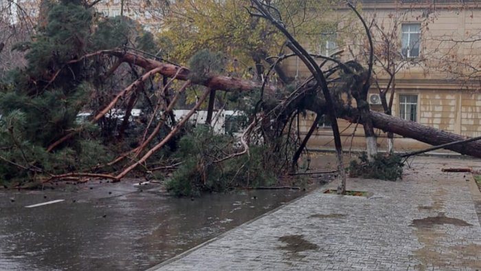 Bakıda ağacın aşması nəqliyyatın hərəkətinə mane olub.