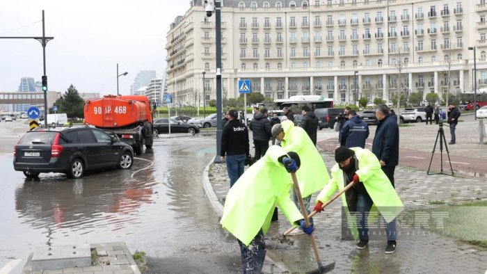 Ərazidə su nasosları, xüsusi texniki qurğular və ehtiyac olan yerlərə ağır texnikalar cəlb olunub.