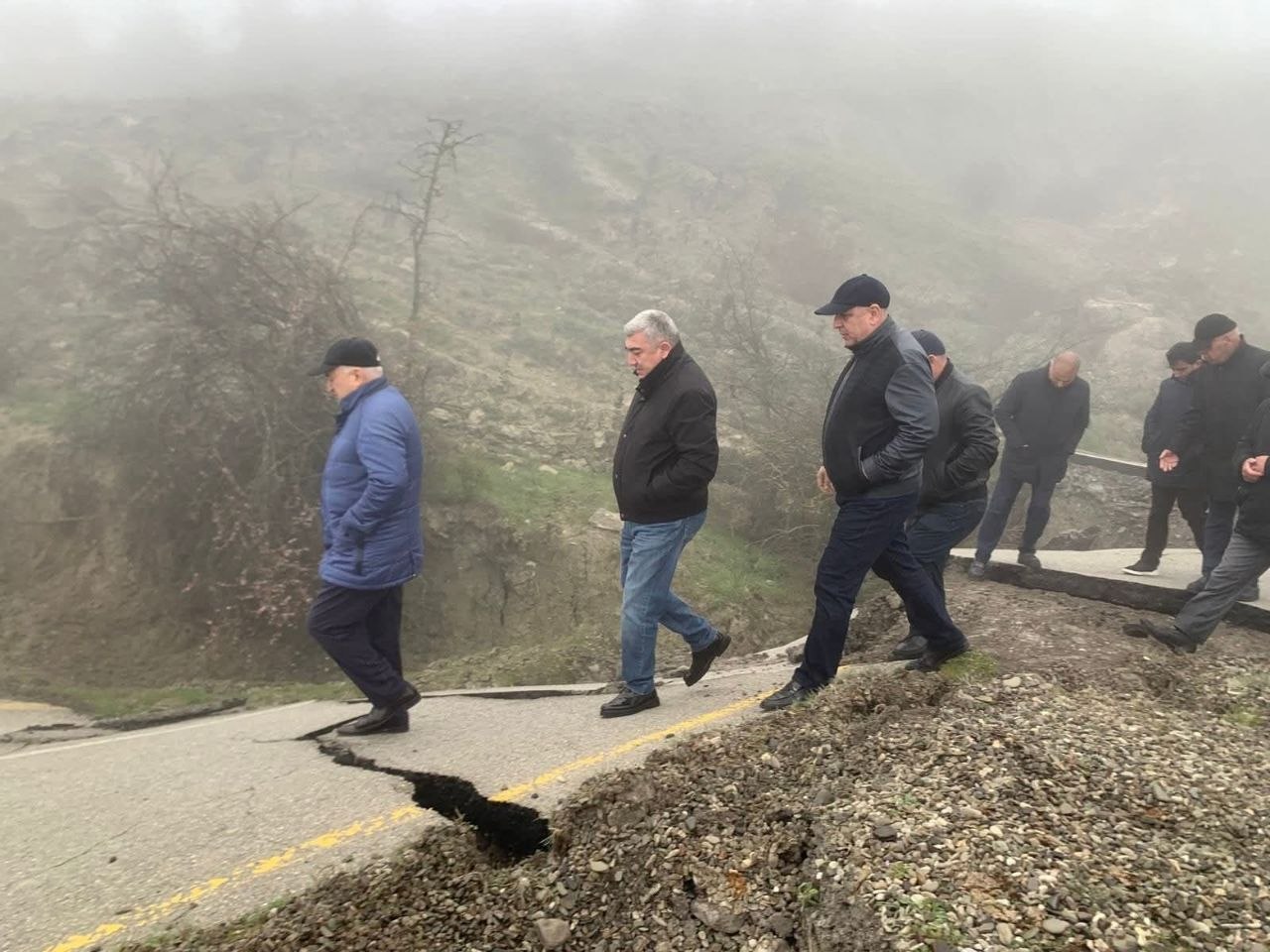 Rəsmilər aprelin 7-də geniş məsafədə torpaq sürüşməsi baş vermiş Quba-Qonaqkənd yoluna baxış keçiriblər.