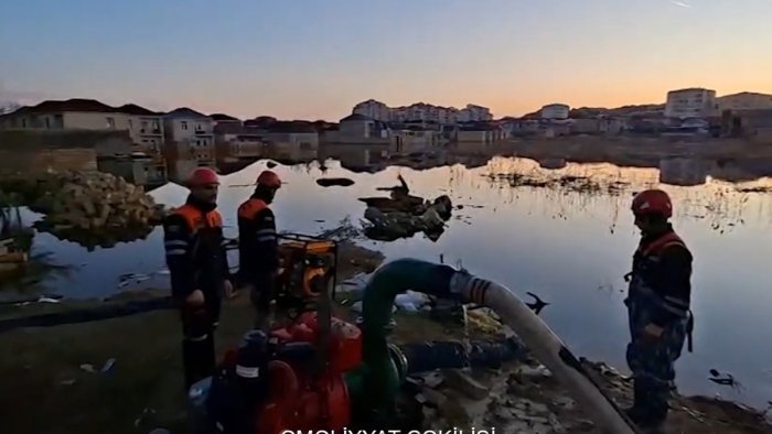 Bu ərazilərdən yağış suları çəkildi - VİDEO