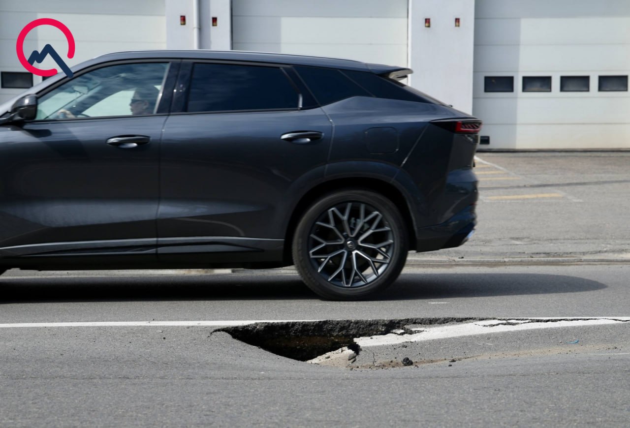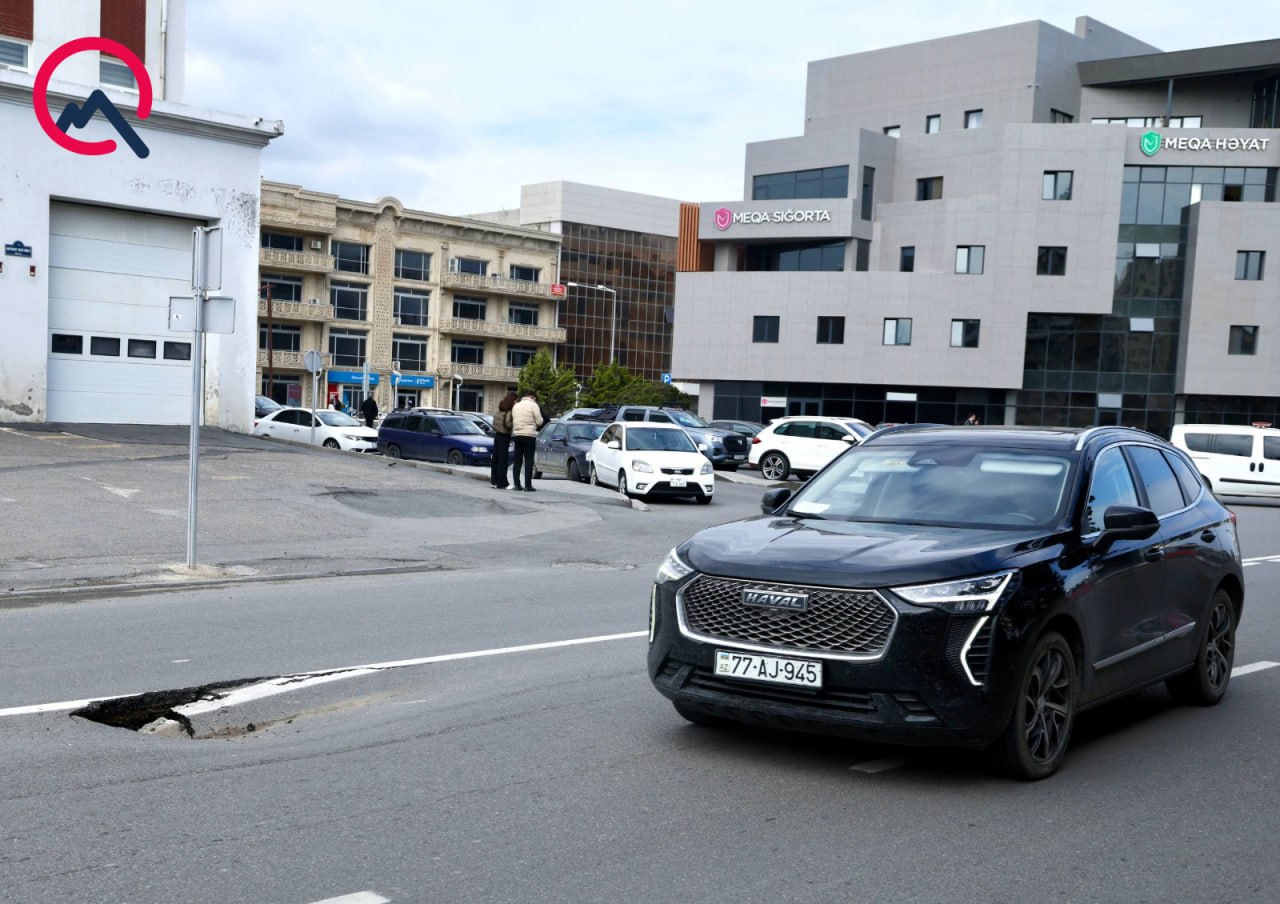 İntensiv yağışlardan sonra Bakının daha bir küçəsində yolun hərəkət hissəsində çökmə yaranıb.