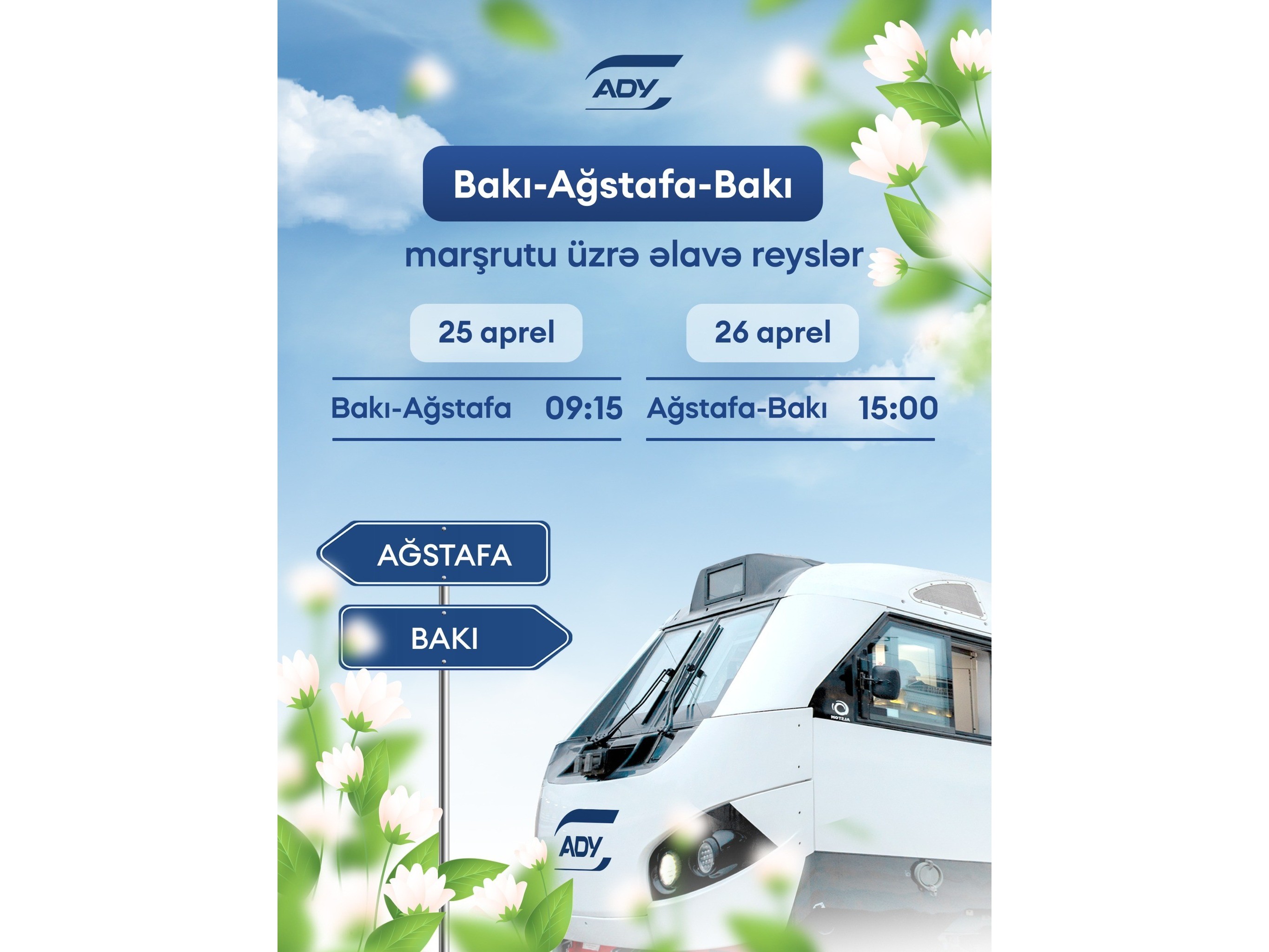 "Azərbaycan Dəmir Yolları" QSC (ADY) sərnişin tələbatını təmin etmək məqsədilə 25 və 26 aprel tarixlərində Bakı-Ağstafa-Bakı marşrutu üzrə əlavə qatar reysləri təyin edib.
