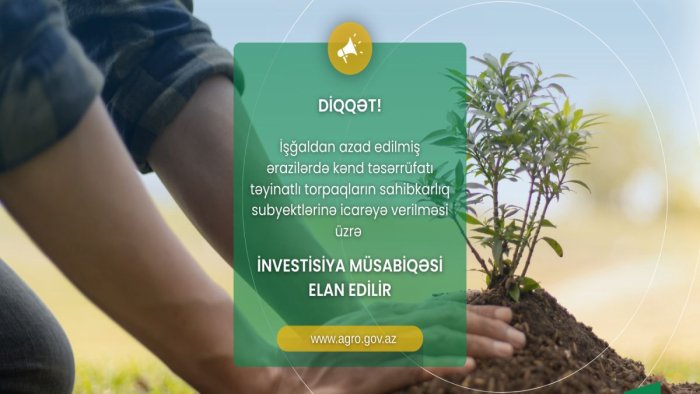 İşğaldan azad edilmiş ərazilərdə kənd təsərrüfatı təyinatlı torpaqların sahibkarlıq subyektlərinə icarəyə verilməsi üzrə üçüncü investisiya müsabiqəsi üzrə müraciətlərin (ərizələrin) qəbuluna başlanılır.